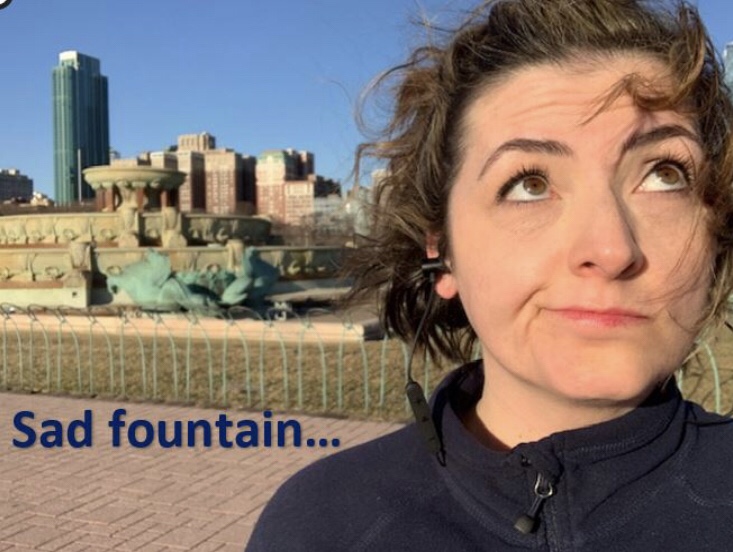 I tried to get a pic of the iconic Grant fountain, but she’s got seasonal depression disorder-which is a real thing anyone in the Midwest can attest to. The Bean was excited to see me, of course.