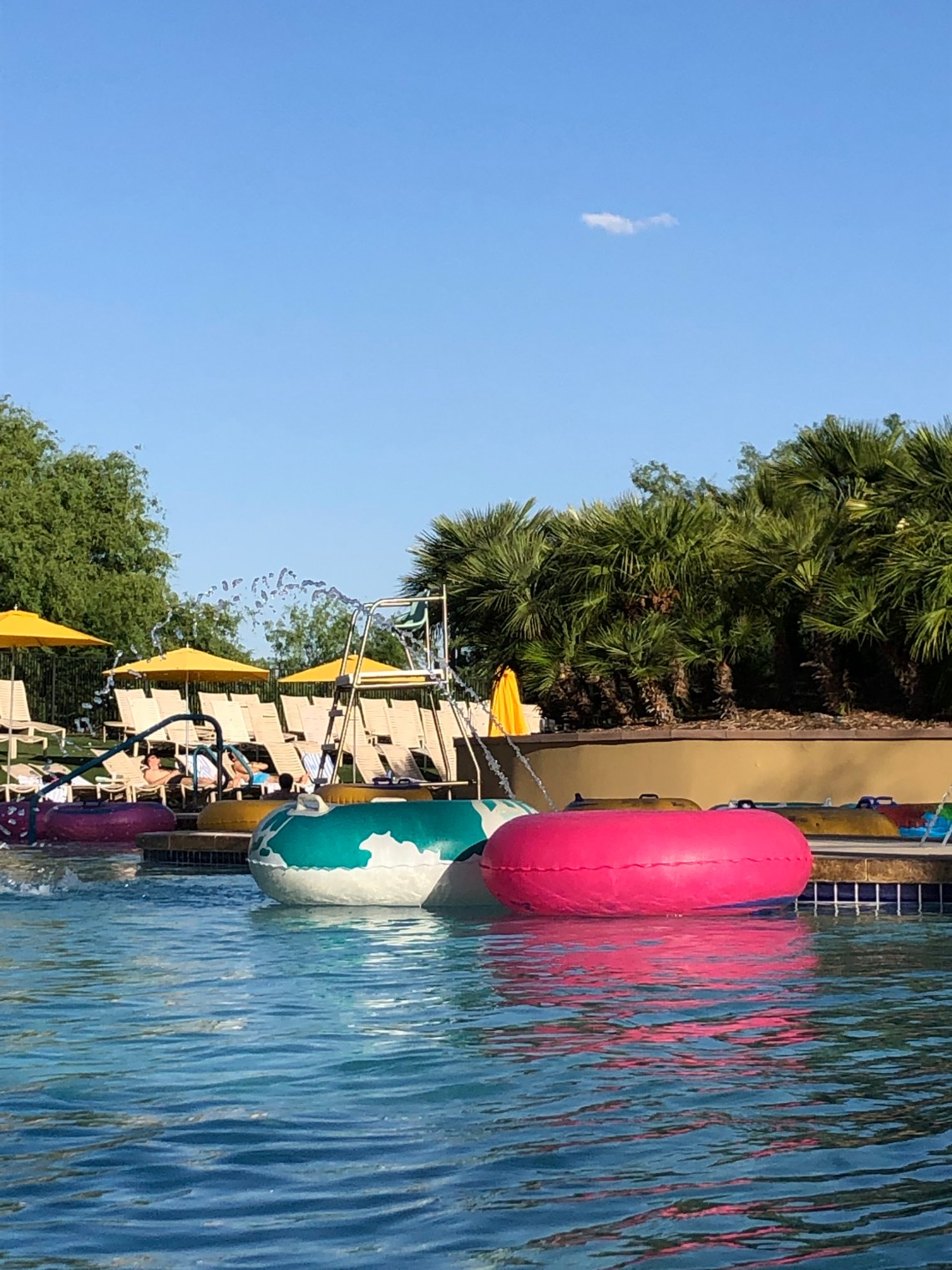 BUT! The best part was afterwards, I treated myself to a PRICKLY PEAR MARGARITA and a trip down the lazy river! Have y’all ever been on a lazy river??? It was my first ever dang time and wow – it was real fun!